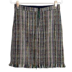 Anthropologie Tweed Multi-Color Fringe Skirt Size 4 Modern Royalty Preppy