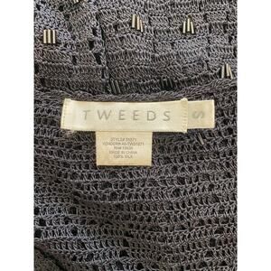 Anthropologie Tweeds Black Silk Beaded Cardigan Sweater Size S Business Preppy