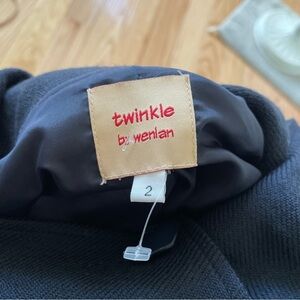 Get ready to look stylish and feel cozy with this Anthropologie Twinkle by Wenlan overcoat. The blue coat features a stand collar, is made of 100% wool, and is in excellent used condition. Perfect for women who wear a Size 2 and love fashionable clothing, this coat is a must-have in your wardrobe.