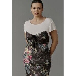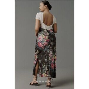Anthropologie Twofer Midi Slip Dress Sz Lg Black Pattern