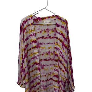 Anthropologie Tye Dyed Open Front Kimono Sleeve Cover Up Multicolor One Size