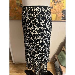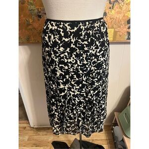 From anthropologies, Evelyn brand comes this cute and unique knee length skirt with fringe cut into the entire body of the skirt! I’ve never seen anything quite like it! If you were to twirl, this would be fantastic! Vivid graphic design in black. Fully lined in black very comfortable, dry clean only very good preowned condition. Lots of stretch.