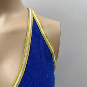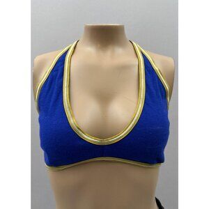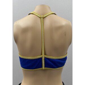 Anthropologie U-Neck Stretch T-Back Sports Bra Top Blue White Yellow Trim Size S
