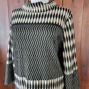 Anthropologie Uncle Frank L Black Tan Chevron Retro Mod Shift Dress 3/4 Sleeve