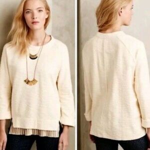 Anthropologie Undiscovered Eye Ivory Pleated Layered Terry Sweater Size Small