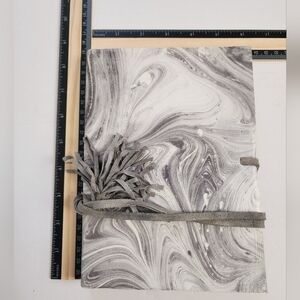 Anthropologie Unisex Leather Marble Grey & Gold Journal Sketch Book Wrap Closure