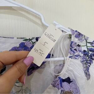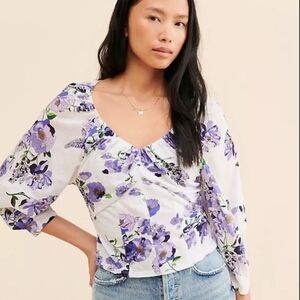 Anthropologie V Neck Ruched Knit Floral Top nwt size xs