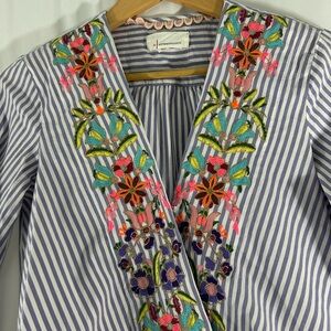 Anthropologie V Neck Wrap Look Long Sleeve Blouse XS Beautiful Embroidery