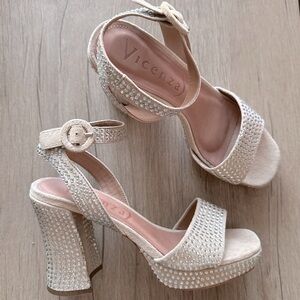 Anthropologie VICENZA Camurca Diamond Gem Beige Platform Sparkly High Heels