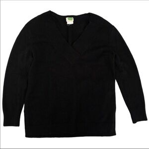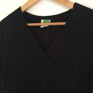 Anthropologie V-neck Black Wool Sweater Side Slits Size S