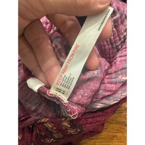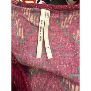Anthropologie V-Neck Keyhole Puffed Sleeve Baby Doll Mini Dress Burgundy Small