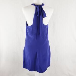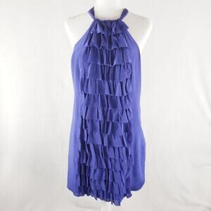 Anthropologie Va Et Vien Halter Dress Women 8 Blue Silk Ruffles Party Racerback