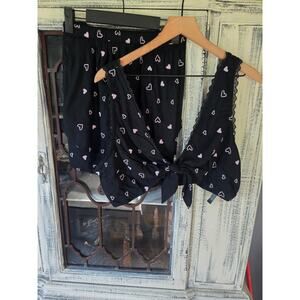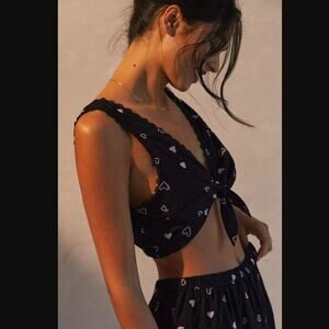 Dotted with sweet motifs, this romantic bralette and short pair are equal parts playful and alluring with this valentine lounge set by Anthropologie. The set includes a pullover bralette and pull-on shorts. Machine washable and is 100% Cotton.