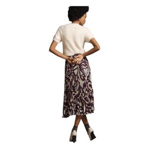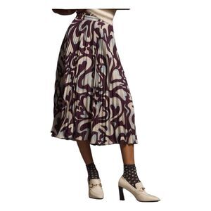 Anthropologie Valerie Pleated Midi Skirt Cream Deep Purple Floral XL