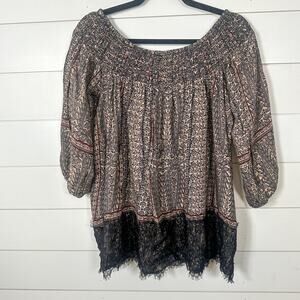 Anthropologie Vanessa Virginia Augusta Boho Off the Shoulder Lace Trim Top Small