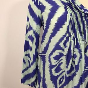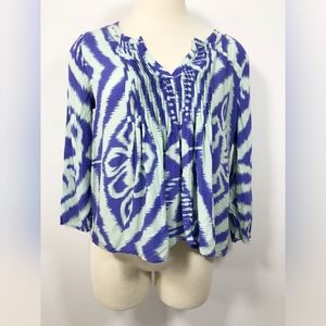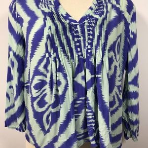 Anthropologie " Vanessa Virginia" Blue & Mint Ikat Printed Mahdia Top