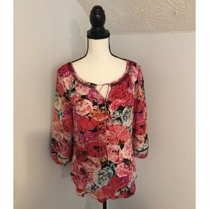 Anthropologie Vanessa Virginia Captured Rose Print Silk Peasant Blouse - Size SM