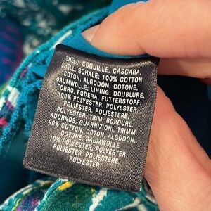 Summer abstract floral print dress from Anthropologie. Thick woven cotton material with embroidery at the neckline. Has pockets that are still sewn and side zipper. Material has a little stretch. Size 8.
