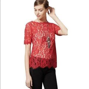 Anthropologie Vanessa Virginia Elysian Pink and Red Lace Top
