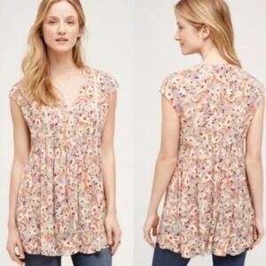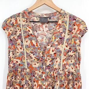 Anthropologie Vanessa Virginia Floral Button Front Tunic Top Size X-Small
