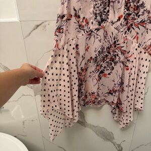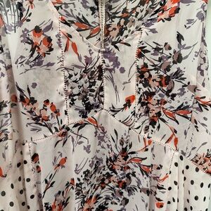 Anthropologie Vanessa Virginia Floral Handkerchief Top w Polka Dot Accents