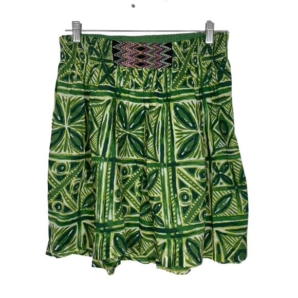 Anthropologie Vanessa Virginia Green Batik Print Mini Skirt Size: US 6