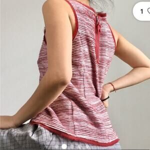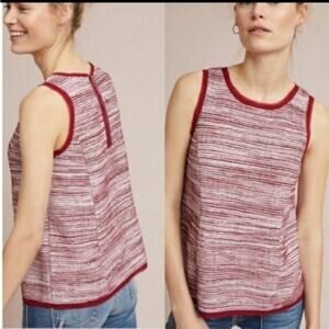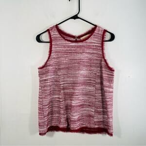 Anthropologie Vanessa Virginia Indira Red White Stripe Fringe Shell Top Small