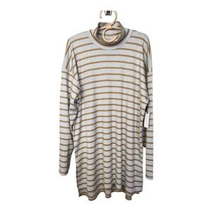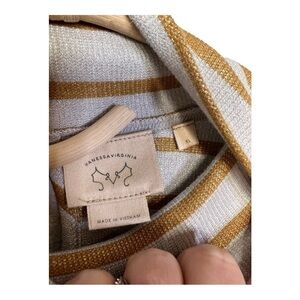 Anthropologie Vanessa Virginia Metallic Stripe Gold Funnel Neck Top XL NWT $78