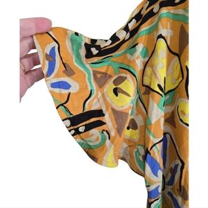 Anthropologie Vanessa Virginia Mina Yellow Print Shift Dress Large Rayon Silk