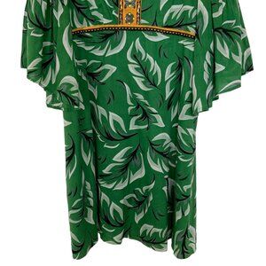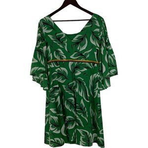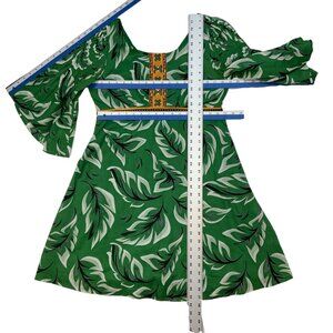Anthropologie Vanessa Virginia Musa Dress 8 Green Tropical Mini Flare Sleeve