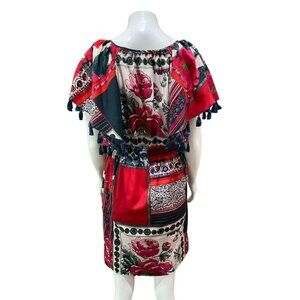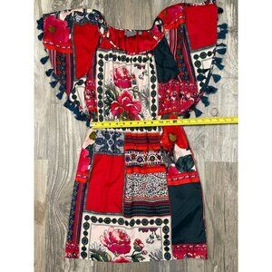 Anthropologie Vanessa Virginia Persian Rose Tassle Boho Dress XS Patchwork Red