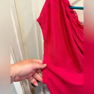 Euc. No flaws. Drape front. V neck back. Ruffles on the sides. Dolman sleeves. Cotton modal blends
