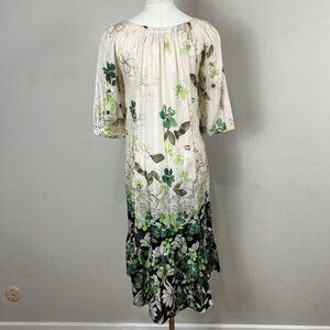 Anthropologie Vanessa Virginia Rainforest 100% Silk Dress Cream Floral Size XSP