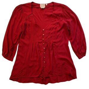 Anthropologie Vanessa Virginia Red Button Down Tunic
