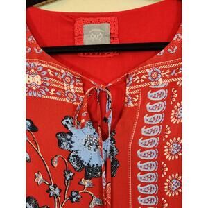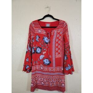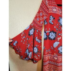 Anthropologie Vanessa Virginia Red Floral Bell Sleeve Silk Peasant Dress Size 2