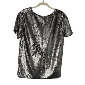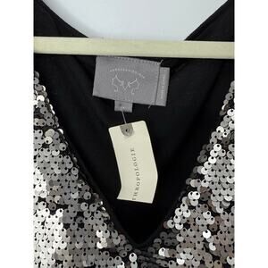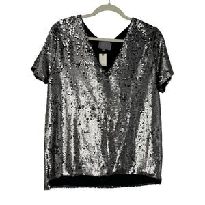 Anthropologie Vanessa Virginia Silver Sequin V-Neck Top Metallic Party NYE M