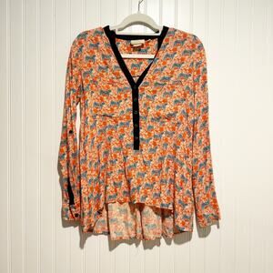 Anthropologie Vanessa Virginia Tiger Print Henley Blouse Size 2