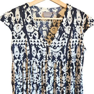 Anthropologie Vanessa Virginia Tunic Blouse Top Navy Cream Women's XSmall
