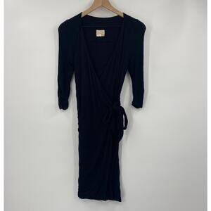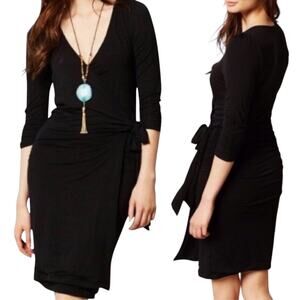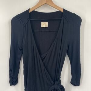 Anthropologie Vanessa Virginia Wrap Dress V Neck Surplice Tie Waist Black XS