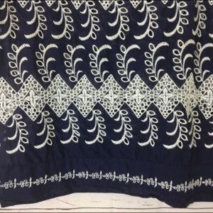 Lovely embroidered eyelet top in very good used condition. Perfect for the 4th of July! Fabric is 100% cotton. Flat measurements are 18.5” pit to pit, 18” waist and 24” length. From a nonsmoking home.