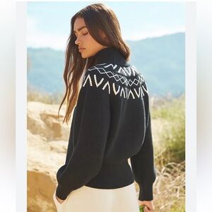 Anthropologie Varley Marcie Fairisle Yoke Knit Sweater in Black Size Small