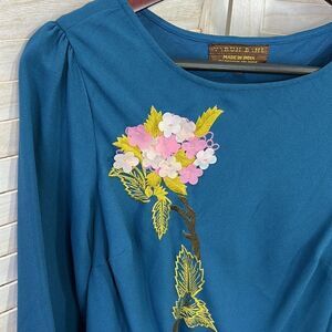 Anthropologie Varun Bahl Teal Hydrangea Swing Dress 2