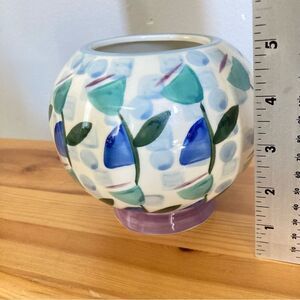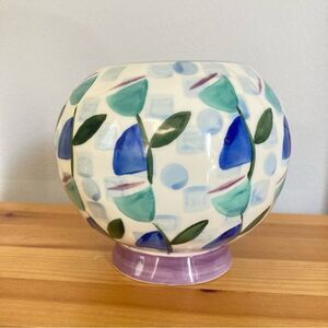 Anthropologie Vase Hand Painted Abstract Floral Blue Purple Green