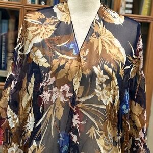 Anthropologie Vasilisa Silk Kimono Navy, One Size