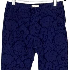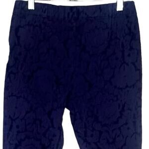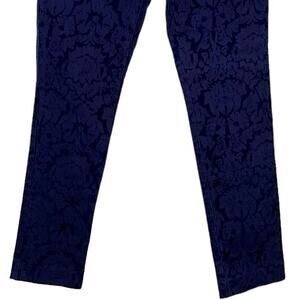 Anthropologie Velour Patterned Textured Skinny Trousers Ankle Crop Pants Blue 8