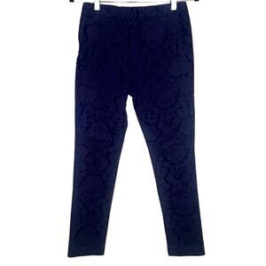 Anthropologie Womens 8 Navy Blue Stretch Skinny Ankle Crop Pants, Abstract Print Pull On Trousers, Thick Elastic Waistband, Side Zip Closure