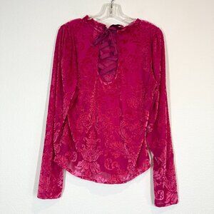 Anthropologie Velvet Burnout Blouse Pink Sheer Tie Neck Paisley Whimsygoth XL