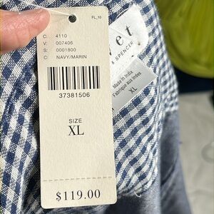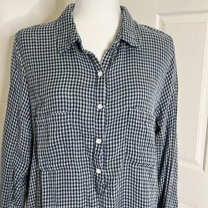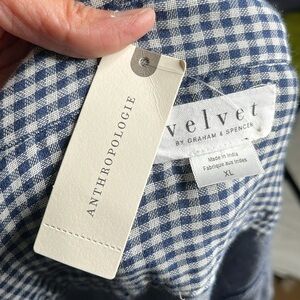 Anthropologie Velvet By Graham & Spencer Gingham Tunic Top XL Long Sleeve Preppy