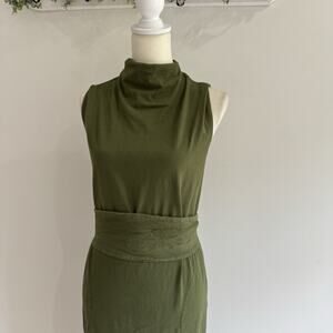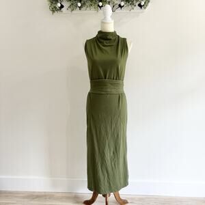 Anthropologie Velvet By Graham & Spencer Green Hydie Mock Neck Maxi Dress Belted