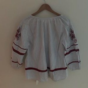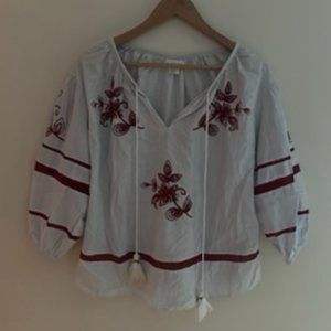 Anthropologie Velvet Embroidered Beaded 3/4 Sleeve Top with Tassels size XS